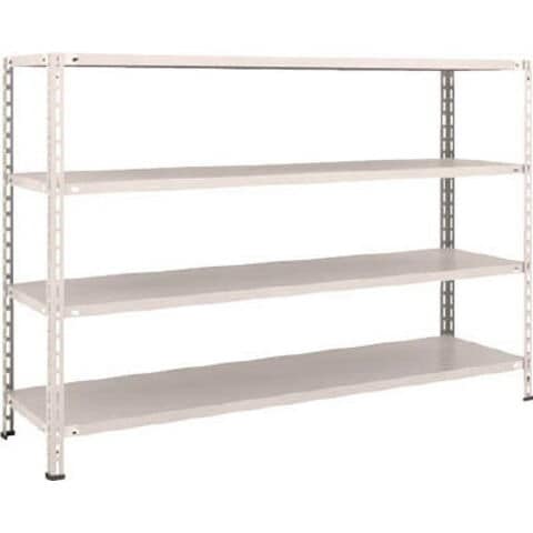 ●組み立て簡単、今までボルト組みをしていた手間が大きく省けます。●中棚は全て棚受けに棚板を置くだけの段替え簡単構造(中棚ボルト不要)です。●間口(mm):1800●奥行(mm):450●色:ネオグレー●高さ(mm):1200●棚段数(段):4●有効間口(mm):1728●組立目安:2人20分●棚板調整ピッチ:50mm●外寸間口(mm):1818●外寸奥行(mm):468●外寸高さ(mm):1204●有効間口寸法は、間口-74mm●色:ネオグレー●均等積載量:80kg/段●最大積載量:400kg/台●集中荷重になりますと耐荷重能力は半減します。必ず均等に荷重を分布させてご使用ください。