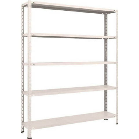 ●組み立て簡単、今までボルト組みをしていた手間が大きく省けます。●中棚は全て棚受けに棚板を置くだけの段替え簡単構造(中棚ボルト不要)です。●間口(mm):1500●奥行(mm):300●色:ネオグレー●高さ(mm):1800●棚段数(段):5●有効間口(mm):1428●組立目安:2人20分●棚板調整ピッチ:50mm●外寸間口(mm):1518●外寸奥行(mm):318●外寸高さ(mm):1804●有効間口寸法は、間口-74mm●色:ネオグレー●均等積載量:80kg/段●最大積載量:400kg/台●集中荷重になりますと耐荷重能力は半減します。必ず均等に荷重を分布させてご使用ください。