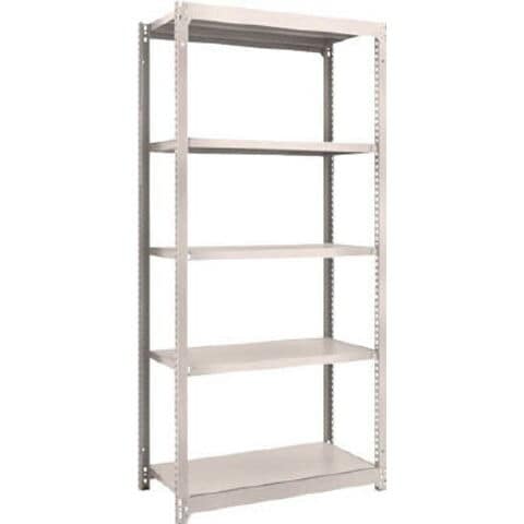 ●ボルトを1本も使用していないボルトレス構造で、分解・組み立て作業を短縮できます。●棚の段数変更が小刻みな25mmピッチで、自由に調整、変更ができます。●高さ、奥行が同じであれば、増結することができます。また、支柱を兼用することにより、コストダウンが図れます。●優れた断面構造で、荷重、横からのねじれにも強いC型形状の支柱を採用しています。●樹脂ベースの使用により、床を傷つけません。●奥行(mm):445●間口(mm):860●高さ(mm):1800●有効間口(mm):816●棚段数(段):5●色:ネオグレー●組立目安:2人30分●棚板調整ピッチ:25mm●外寸間口(mm):905●外寸奥行(mm):455●外寸高さ(mm):1808●色:ネオグレー●均等積載量:150kg/段●最大積載量:1000kg/台●集中荷重になりますと耐荷重能力は半減します。必ず均等に荷重を分布させてご使用ください。●連結型のみではご使用できません。
