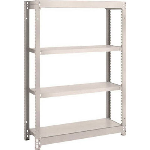 ●ボルトを1本も使用していないボルトレス構造で、分解・組み立て作業を短縮できます。●棚の段数変更が小刻みな25mmピッチで、自由に調整、変更ができます。●高さ、奥行が同じであれば、増結することができます。また、支柱を兼用することにより、コストダウンが図れます。●優れた断面構造で、荷重、横からのねじれにも強いC型形状の支柱を採用しています。●樹脂ベースの使用により、床を傷つけません。●奥行(mm):295●間口(mm):860●高さ(mm):1200●有効間口(mm):816●棚段数(段):4●色:ネオグレー●組立目安:2人30分●棚板調整ピッチ:25mm●外寸間口(mm):905●外寸奥行(mm):305●外寸高さ(mm):1208●色:ネオグレー●均等積載量:150kg/段●最大積載量:1000kg/台●集中荷重になりますと耐荷重能力は半減します。必ず均等に荷重を分布させてご使用ください。●連結型のみではご使用できません。