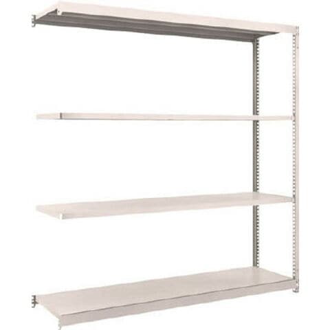 ●ボルトを1本も使用していないボルトレス構造で、分解・組み立て作業を短縮できます。●棚の段数変更が小刻みな25mmピッチで、自由に調整、変更ができます。●高さ、奥行が同じであれば、増結することができます。また、支柱を兼用することにより、コストダウンが図れます。●優れた断面構造で、荷重、横からのねじれにも強いC型形状の支柱を採用しています。●樹脂ベースの使用により、床を傷つけません。●奥行(mm):445●間口(mm):1760●高さ(mm):1800●有効間口(mm):1716●棚段数(段):4●色:ネオグレー●組立目安:2人30分●棚板調整ピッチ:25mm●外寸間口(mm):1760●外寸奥行(mm):455●外寸高さ(mm):1808●色:ネオグレー●均等積載量:150kg/段●最大積載量:1000kg/台●集中荷重になりますと耐荷重能力は半減します。必ず均等に荷重を分布させてご使用ください。●連結型のみではご使用できません。