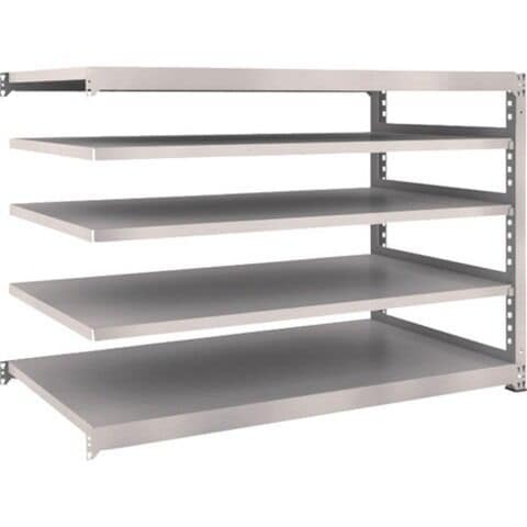 ●ボルトを1本も使用していないボルトレス構造で、分解・組み立て作業が簡単で、作業時間を大幅に短縮できます。●棚の段変更が、25mmピッチで、自由に調整、変更ができます。●高さ、奥行が同じであれば、増結することができます。また、支柱を兼用することにより、コストダウンが図れます。●優れた断面構造で、荷重、横からのねじれにも強いC型形状の支柱を採用しています。●樹脂ベースの使用により、床を傷つけません。