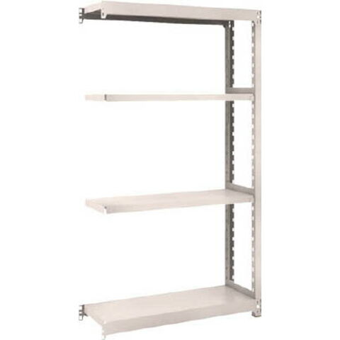 ●ボルトを1本も使用していないボルトレス構造で、分解・組み立て作業が簡単で、作業時間を大幅に短縮できます。●棚の段変更が、50mmピッチで、自由に調整、変更ができます。●高さ、奥行が同じであれば、増結することができます。また、支柱を兼用することにより、コストダウンが図れます。●優れた断面構造で、荷重、横からのねじれにも強いC型形状の支柱を採用しています。●樹脂ベースの使用により、床を傷つけません。●奥行(mm):300●間口(mm):860●高さ(mm):1500●有効間口(mm):816●棚段数(段):4●色:ネオグレー●組立目安:2人30分●棚板調整ピッチ:50mm●外寸間口(mm):860●外寸奥行(mm):305●外寸高さ(mm):1508●色:ネオグレー●均等積載量:200kg/段●最大積載量:1500kg/台●集中荷重になりますと耐荷重能力は半減します。必ず均等に荷重を分布させてご使用ください。●連結型のみではご使用できません。