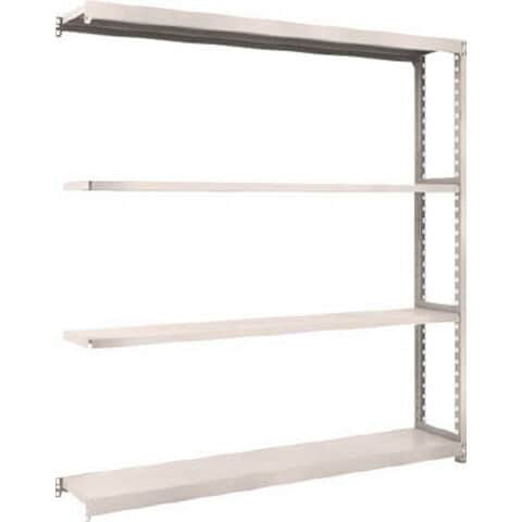 ●ボルトを1本も使用していないボルトレス構造で、分解・組み立て作業が簡単で、作業時間を大幅に短縮できます。●棚の段変更が、50mmピッチで、自由に調整、変更ができます。●高さ、奥行が同じであれば、増結することができます。また、支柱を兼用することにより、コストダウンが図れます。●優れた断面構造で、荷重、横からのねじれにも強いC型形状の支柱を採用しています。●樹脂ベースの使用により、床を傷つけません。●奥行(mm):300●間口(mm):1760●高さ(mm):1800●有効間口(mm):1716●棚段数(段):4●色:ネオグレー●組立目安:2人30分●棚板調整ピッチ:50mm●外寸間口(mm):1760●外寸奥行(mm):305●外寸高さ(mm):1808●色:ネオグレー●均等積載量:200kg/段●最大積載量:1500kg/台●集中荷重になりますと耐荷重能力は半減します。必ず均等に荷重を分布させてご使用ください。●連結型のみではご使用できません。