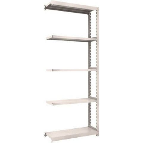 ●ボルトを1本も使用していないボルトレス構造で、分解・組み立て作業が簡単で、作業時間を大幅に短縮できます。●棚の段変更が、50mmピッチで、自由に調整、変更ができます。●高さ、奥行が同じであれば、増結することができます。また、支柱を兼用することにより、コストダウンが図れます。●優れた断面構造で、荷重、横からのねじれにも強いC型形状の支柱を採用しています。●樹脂ベースの使用により、床を傷つけません。●奥行(mm):300●間口(mm):860●高さ(mm):2100●有効間口(mm):816●棚段数(段):5●色:ネオグレー●組立目安:2人30分●棚板調整ピッチ:50mm●外寸間口(mm):860●外寸奥行(mm):305●外寸高さ(mm):2108●色:ネオグレー●均等積載量:200kg/段●最大積載量:1500kg/台●集中荷重になりますと耐荷重能力は半減します。必ず均等に荷重を分布させてご使用ください。●連結型のみではご使用できません。
