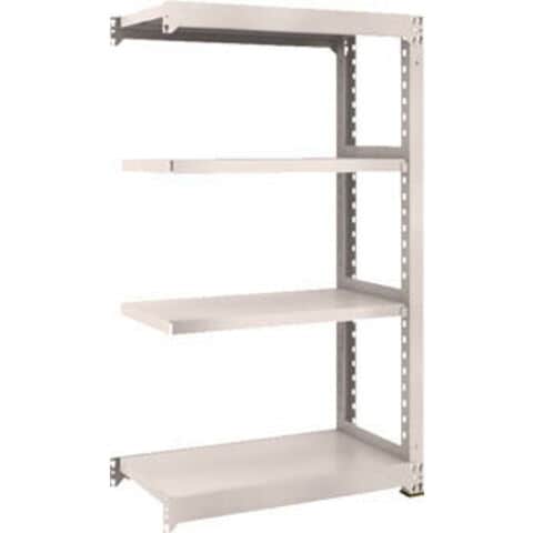 ●ボルトを1本も使用していないボルトレス構造で、分解・組み立て作業が簡単で、作業時間を大幅に短縮できます。●棚の段変更が、50mmピッチで、自由に調整、変更ができます。●高さ、奥行が同じであれば、増結することができます。また、支柱を兼用することにより、コストダウンが図れます。●優れた断面構造で、荷重、横からのねじれにも強いC型形状の支柱を採用しています。●樹脂ベースの使用により、床を傷つけません。●間口(mm):900●奥行(mm):471●有効間口(mm):840●高さ(mm):1500●色:ネオグレー●棚段数(段):4●組立目安:2人30分●棚板調整ピッチ:50mm●外寸間口(mm):900●外寸奥行(mm):481●外寸高さ(mm):1510●色:ネオグレー●均等積載量:300kg/段●最大積載量:2500kg/台●集中荷重になりますと耐荷重能力は半減します。必ず均等に荷重を分布させてご使用ください。●連結型のみではご使用できません。