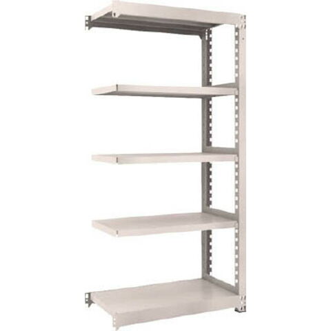●ボルトを1本も使用していないボルトレス構造で、分解・組み立て作業が簡単で、作業時間を大幅に短縮できます。●棚の段変更が、50mmピッチで、自由に調整、変更ができます。●高さ、奥行が同じであれば、増結することができます。また、支柱を兼用することにより、コストダウンが図れます。●優れた断面構造で、荷重、横からのねじれにも強いC型形状の支柱を採用しています。●樹脂ベースの使用により、床を傷つけません。●間口(mm):900●奥行(mm):471●有効間口(mm):840●高さ(mm):1800●色:ネオグレー●棚段数(段):5●組立目安:2人30分●棚板調整ピッチ:50mm●外寸間口(mm):900●外寸奥行(mm):481●外寸高さ(mm):1810●色:ネオグレー●均等積載量:300kg/段●最大積載量:2500kg/台●集中荷重になりますと耐荷重能力は半減します。必ず均等に荷重を分布させてご使用ください。●連結型のみではご使用できません。
