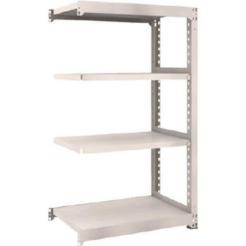 ●ボルトを1本も使用していないボルトレス構造で、分解・組み立て作業が簡単で、作業時間を大幅に短縮できます。●棚の段変更が、50mmピッチで、自由に調整、変更ができます。●高さ、奥行が同じであれば、増結することができます。また、支柱を兼用することにより、コストダウンが図れます。●優れた断面構造で、荷重、横からのねじれにも強いC型形状の支柱を採用しています。●樹脂ベースの使用により、床を傷つけません。●間口(mm):900●奥行(mm):571●有効間口(mm):840●高さ(mm):1500●色:ネオグレー●棚段数(段):4●組立目安:2人30分●棚板調整ピッチ:50mm●外寸間口(mm):900●外寸奥行(mm):581●外寸高さ(mm):1510●色:ネオグレー●均等積載量:500kg/段●最大積載量:2500kg/台●集中荷重になりますと耐荷重能力は半減します。必ず均等に荷重を分布させてご使用ください。●連結型のみではご使用できません。