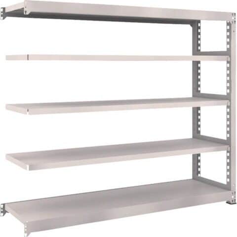 ●ボルトを1本も使用していないボルトレス構造で、分解・組み立て作業が簡単で、作業時間を大幅に短縮できます。●棚の段変更が、25mmピッチで、自由に調整、変更ができます。●高さ、奥行が同じであれば、増結することができます。また、支柱を兼用することにより、コストダウンが図れます。●優れた断面構造で、荷重、横からのねじれにも強いC型形状の支柱を採用しています。●樹脂ベースの使用により、床を傷つけません。