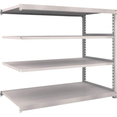 ●ボルトを1本も使用していないボルトレス構造で、分解・組み立て作業が簡単で、作業時間を大幅に短縮できます。●棚の段変更が、25mmピッチで、自由に調整、変更ができます。●高さ、奥行が同じであれば、増結することができます。また、支柱を兼用することにより、コストダウンが図れます。●優れた断面構造で、荷重、横からのねじれにも強いC型形状の支柱を採用しています。●樹脂ベースの使用により、床を傷つけません。