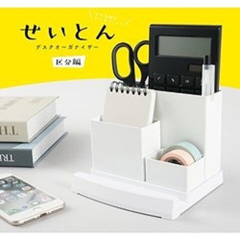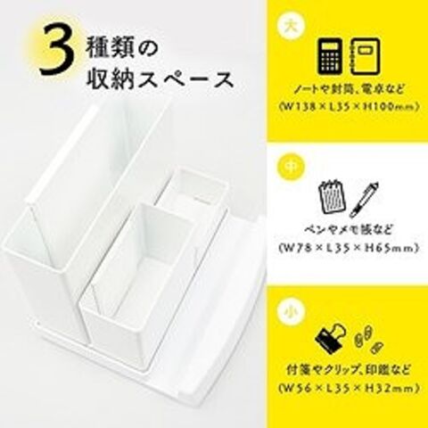 ●机やテーブルの上に散乱しがちな筆記具やハサミ、付箋、電卓、リモコン等を収納できます。