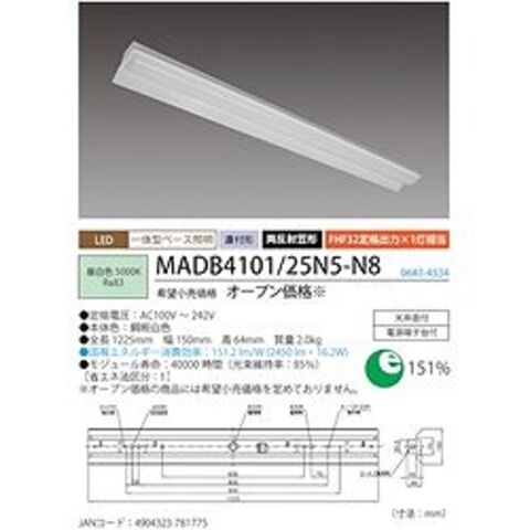 HotaluX 両反射笠形2500lm LED一体型ベース照明 MADB410125N5N8 工事 照明用品 作業灯 照明用品 天井照明器具【送料無料】