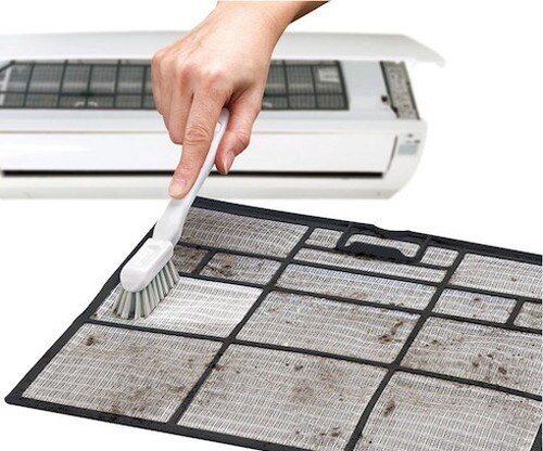 ●ホコリが取れないときは、フィルターを外してお風呂や洗面台などで水またはぬるま湯で濡らし、中性もしくは弱アルカリ性洗剤でブラッシングしてください。