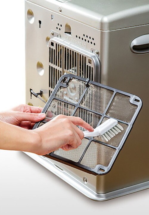 ●外せないフィルターは濡らした雑巾でフィルターを拭き、フィルターが湿った状態でブラッシングしてください。