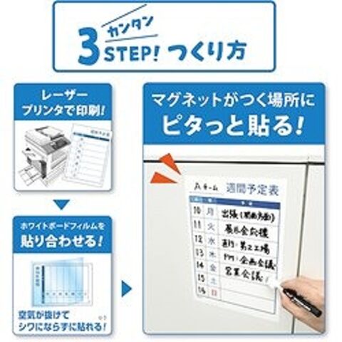 ●超薄型マグネット用紙でレーザープリンタで直接印刷できる為、直ぐに掲示ができる