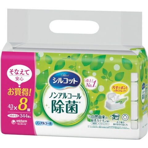 ユニ チャーム シルコットノンアルコール除菌ウェットティッシュ 詰替43枚X8個入 460045 清掃 衛生用品 労働衛生用品 除菌衛生用品