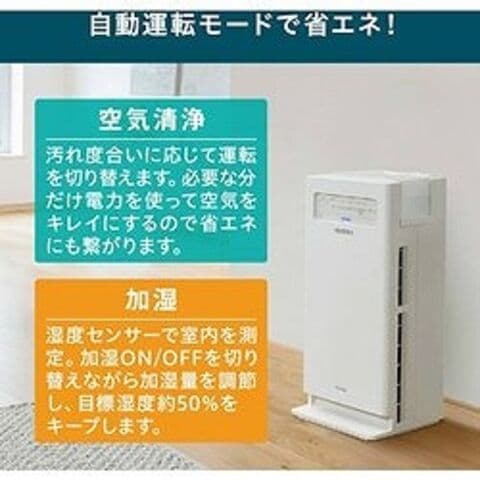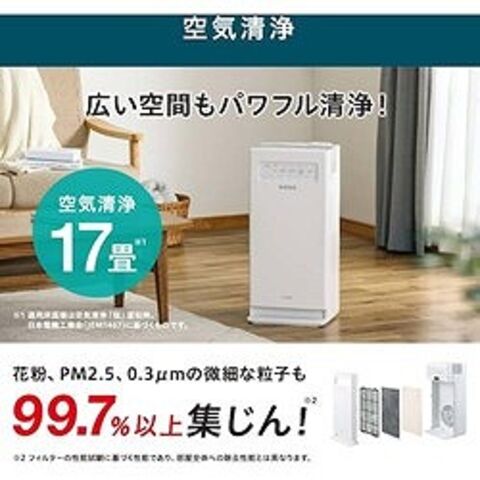 ●適用床面積:空気清浄機能/17畳、加湿機能/8畳(プレハブ)・5畳(木造)
