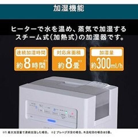 ●加湿空気清浄機スチーム式なので、加熱した水で加湿できるのでより清潔です。