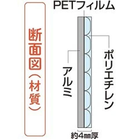 ●高反射断熱アルミ素材・ペットシート・ポリエチレン(プチプチ)の3層で外からの熱や冷気を大幅カットできます。