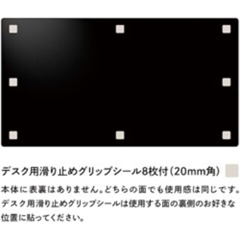 ●間口(mm):590●奥行(mm):320●厚さ(mm):2●色:ブラック●幅(mm):590●カラー:ブラック●再生PVC●デスク用滑り止めグリップシール8枚●デスク用滑り止めグリップシール8枚入●書きやすさにこだわったデスクマットです。