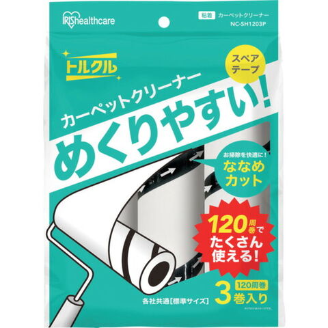 IRIS 粘着クリーナートルクル スペア 普通粘着 120周巻 3本 アイリスオーヤマ 清掃 衛生用品 清掃用品 粘着ローラークリーナー NC-SH1203P