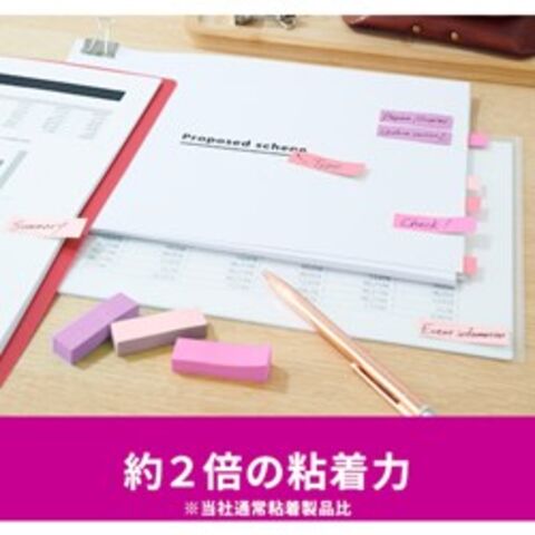●色:アイリスインフュージョン・ポジティブリィピンク・トロピカルピンク・ピンク●縦(mm):50●横(mm):15●パック入数:90枚×32冊●サイズ:50mm×15mm●枚数:90枚×32パッド●外箱入数:10個●紙箱●カラフルな4色のセットなので、色で識別したり、書いた部分を目立たせたりすることができます。