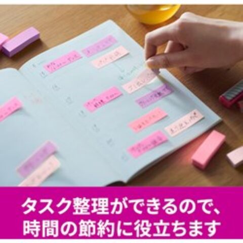 ●色:アイリスインフュージョン・ポジティブリィピンク・トロピカルピンク・ピンク●縦(mm):50●横(mm):15●パック入数:45枚×8冊●サイズ:50mm×15mm●枚数:45枚×8パッド●外箱入数:10個●クリアケース●カラフルな4色のセットなので、色で識別したり、書いた部分を目立たせたりすることができます。