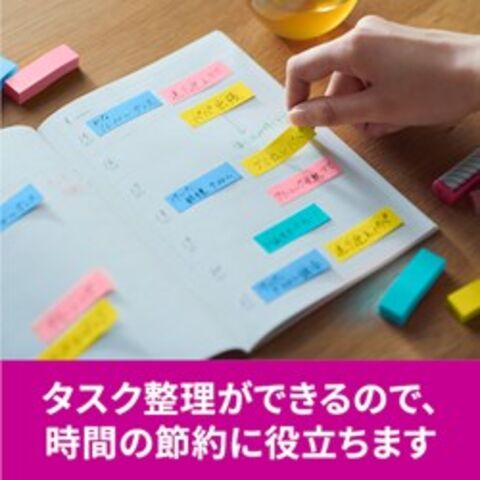 ●色:ポジティブリィピンク・アクアスプラッシュ・ブルー・シトロン●縦(mm):50●横(mm):15●パック入数:90枚×32冊●サイズ:50mm×15mm●枚数:90枚×32パッド●外箱入数:10個●紙箱●カラフルな4色のセットなので、色で識別したり、書いた部分を目立たせたりすることができます。