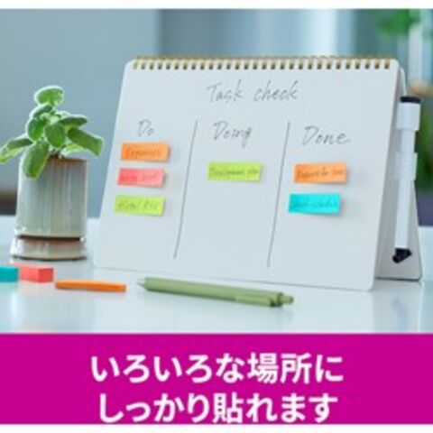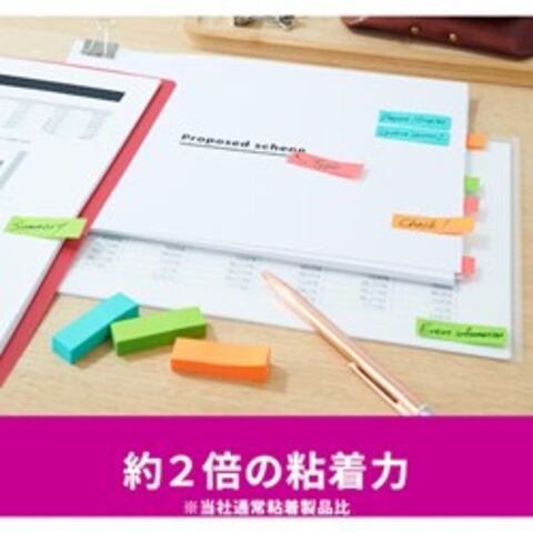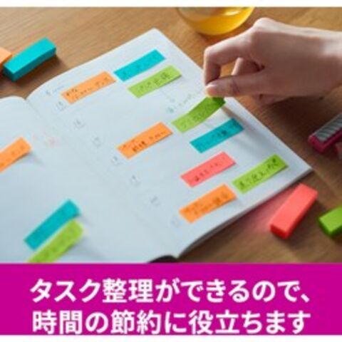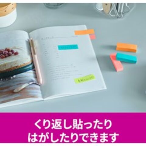 ●色:アクアスプラッシュ・グアバ・バイタルオレンジ・ライトグリーン●縦(mm):50●横(mm):15●パック入数:90枚×32冊●サイズ:50mm×15mm●枚数:90枚×32パッド●外箱入数:10個●紙箱●カラフルな4色のセットなので、色で識別したり、書いた部分を目立たせたりすることができます。