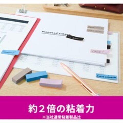 ●色:ブラック・べブルグレー・オーキッドフロスト・ブルー●縦(mm):50●横(mm):15●パック入数:90枚×24冊・70枚×8冊(ブラックのみ)●サイズ:50mm×15mm●枚数:90枚×24パッド/70枚×8パッド(ブラックのみ)●外箱入数:10個●紙箱●カラフルな4色のセットなので、色で識別したり、書いた部分を目立たせたりすることができます。