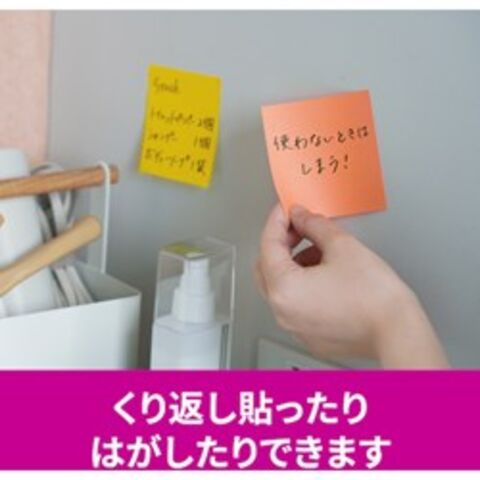●色:ビビッドイエロー・トロピカルピンク・パパイヤフィズ・アシッドライム●縦(mm):75●横(mm):75●パック入数:45枚×4冊●サイズ:75mm×75mm●枚数:45枚×4パッド●外箱入数:10個●クリアケース●カラフルな4色のセットなので、色で識別したり、書いた部分を目立たせたりすることができます。