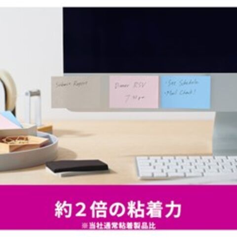 ●粘着力が2倍(当社通常粘着製品比)なので、つきにくい場所にもしっかりと貼れます。
