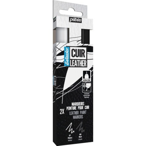 Pebeo セタカラーレザー(革用)マーカー マット色 ホワイト&ブラック 2色セット 295685 工事 照明用品 塗装 内装用品 塗料