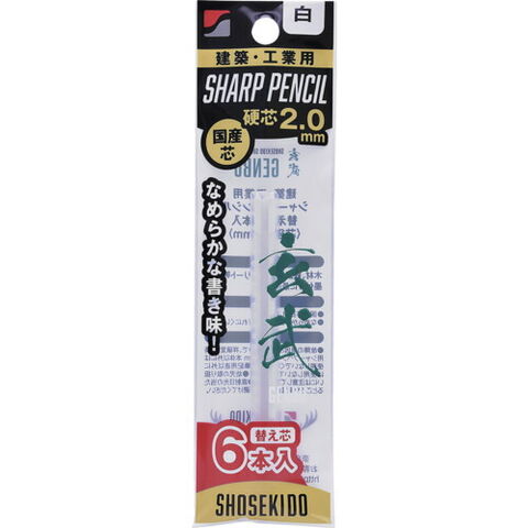 祥碩堂 玄武 建築用シャープペンシル2.0替え芯6本入 白 祥碩堂 測定 計測用品 測量用品 建築用筆記具 100-W6