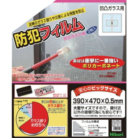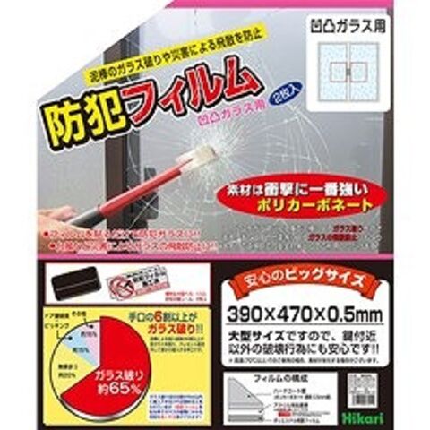 光 防犯フィルム 凹凸ガラス用2p W390×H470 BGF4741 環境改善用品 防災 防犯用品 窓用フィルム