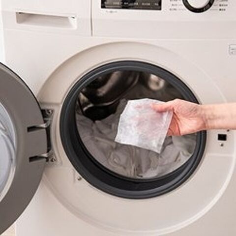 ●白い衣類だけを集めて、本品1包を洗濯機に入れてから洗濯物を入れ、通常通り洗濯洗剤を入れて洗濯してください。