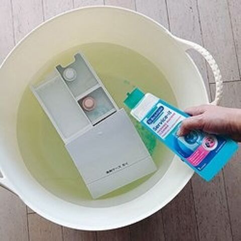 ●全自動洗濯機、乾燥機能付き全自動洗濯機:4リットルの水にサービスイットを50ml入れ、洗剤入れをはずし30分間その液に浸します。残留物がないように十分洗い流して、元の位置に戻します。