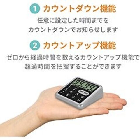 ●タイマー機能:カウントダウン(アラーム設定時間まで)、カウントアップ(00分00秒からスタートさせた場合、最大99分59秒まで)