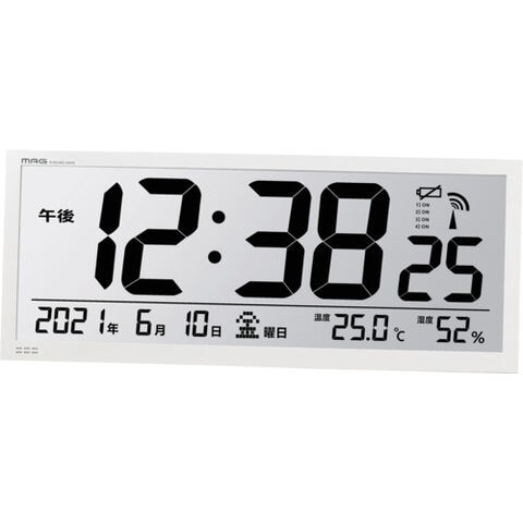 MAG 掛け時計 業務用 電波時計 デジタル 大型 グランタイム 時報付き 温度 湿度 日付 曜日 カレンダー 置き掛け兼用 ホワイト W-780WH-Z W780WHZ オフィス 住設用品 オフィス備品 時計【送料無料】