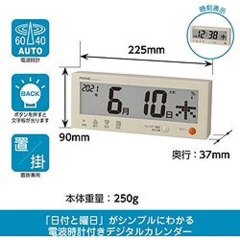 MAG デジタルカレンダー デジタルカレンダー 電波時計 デジタル こよみん ライト 六曜 日付 曜日 ベージュ W-762BE-Z W762BEZ オフィス 住設用品 オフィス備品 時計【送料無料】