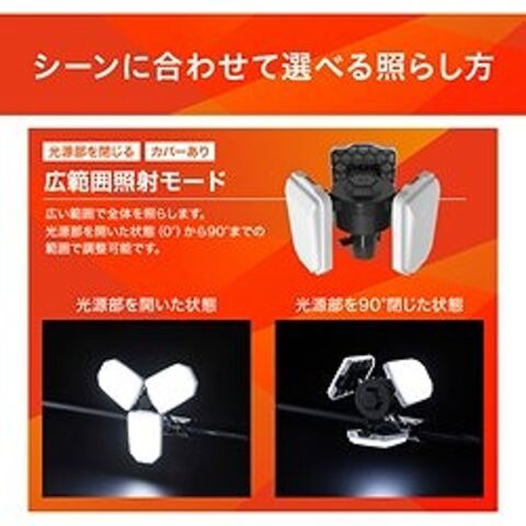 ●光源部を開きカバーなしの「大光量モード」とカバーありの「眩しさ軽減モード」の2WAYタイプです。