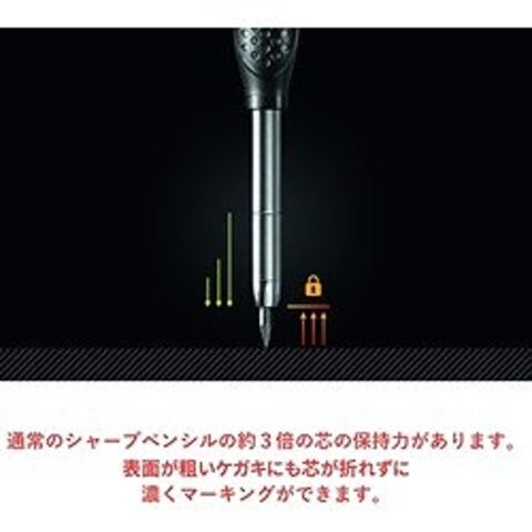 ●通常のシャープペンシルの約3倍の2kgまでの荷重に耐えられる芯の保持力があります。