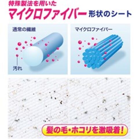 ●マイクロファイバーの超極細繊維が髪の毛やホコリなど小さな汚れをからめ取り、吸着します。