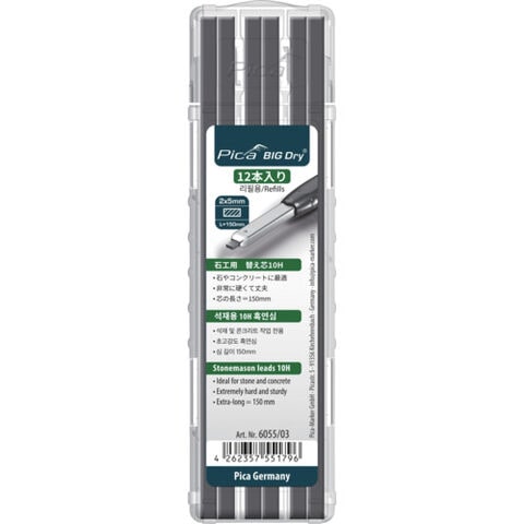 ピカマーカー 建築用シャープペンシル"BIG Dry"用替芯 12本入り 黒10H(日本語パッケージ) 605503 測定 計測用品 測量用品 建築用筆記具