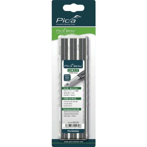 ピカマーカー 建築用シャープペンシルBIG Dry用替芯 12本入り 黒10H ブリスターパック Pica Marker社 測定 計測用品 測量用品 建築用筆記具 6055SB03