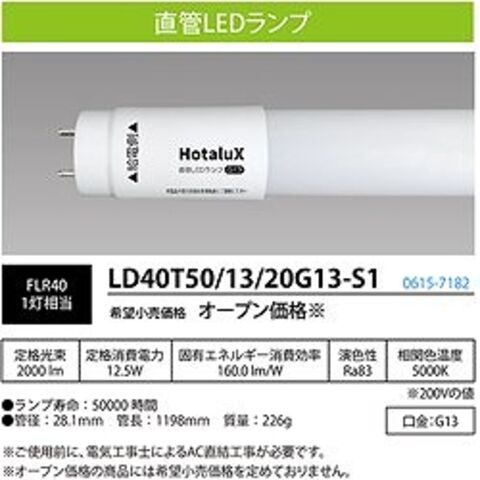 HotaluX 直管LEDランプ HotaluX 40形 昼白色 2000lm 口金G13 LD40T501320G13S1 工事 照明用品 作業灯 照明用品 直管形ランプ