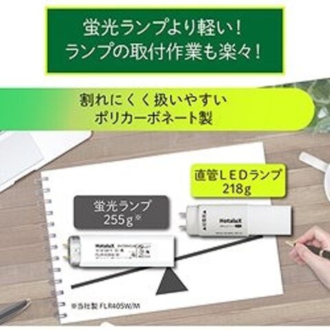 ●事務所、倉庫、住宅などの40W直管蛍光ランプからLEDへの交換に。