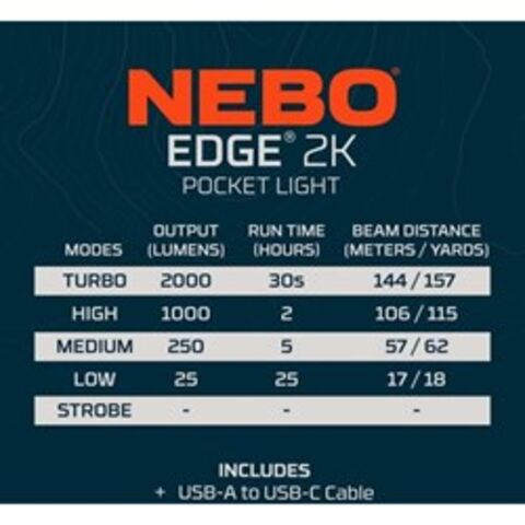 ●充電ゲージがあるため残りの充電量が一目でわかります●明るさ(lm):2000lm(ターボ)/1000lm(強)/250lm(中)/25lm(弱)●幅(mm):32●奥行(mm):135●高さ(mm):25●最大点灯時間(h):30秒(ターボ)/2時間(強)/5時間(中)/25時間(弱)●全長(mm):135●USB-C充電ケーブル●コンパクトで最大2000ルーメンのライトです●タクティカルライトとして設計されているため、コンパクトでスリムで軽量です●クリップ付きです●親指を回すだけで簡単にライトモードの変更が可能です。