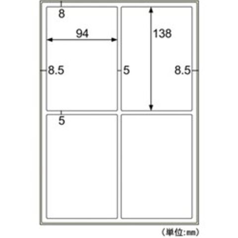 ●物流倉庫や工場の管理・表示に●色:白●面付:4●1パック内:40●ラベルサイズ(mm)縦:94●ラベルサイズ(mm)横:138●シートサイズ:A4(210×297)●紙厚さ:0.23mm(ラベルのみの厚さ:0.08mm)●坪量:216g/[[M2]]●ホワイトPETフィルム ●長時間日光にあたるなど、環境によって印刷内容の退色やラベル自体の変色の可能性があります。