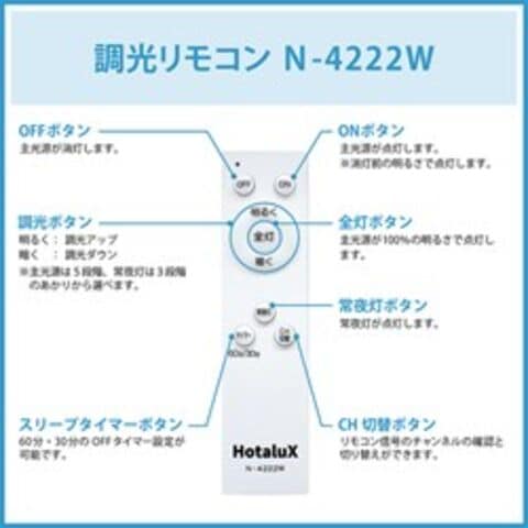 ●明るさ(lm):4949●光源色:電球色●幅(mm):434●長さ(mm):434●高さ(mm):128●電源(V):100●消費電力(W):39●定格寿命(時間):40000●適合畳数:12●消費効率(lm/W):115.3調光(本体):5段階●調光(LED常夜灯):3段階●OFFタイマー(分):60・30●防虫機能:虫の入りにくい構造●省エネ達成率230%●乳白色アクリルカバー●アダプタ×1個●リモコン×1個●リモコンケース×1個●単四乾電池×2本●リモコンケース固定用木ネジ×2個●調光器付壁スイッチには使用できませんので、一般用入切スイッチに交換して下さい。